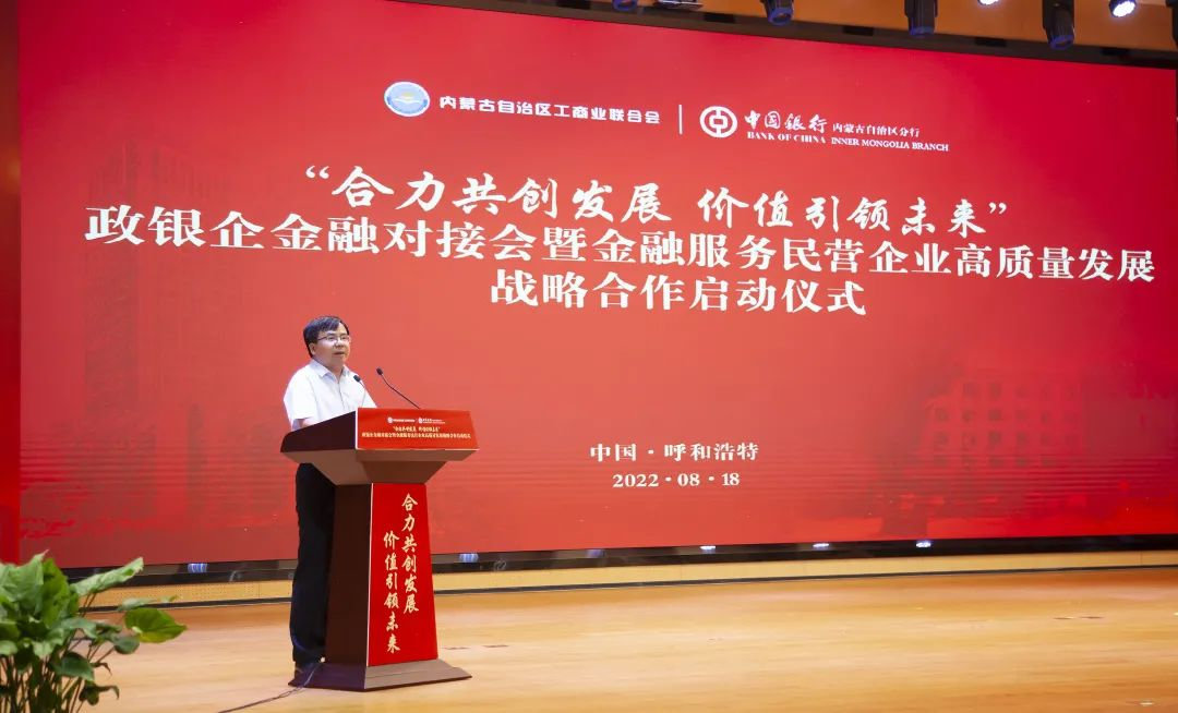 在與會(huì)人員的共同見(jiàn)證下,中國(guó)銀行內(nèi)蒙古自治區(qū)分行與自治區(qū)工商聯(lián)金融服務(wù)民營(yíng)企業(yè)高質(zhì)量發(fā)展戰(zhàn)略合作正式啟航。
