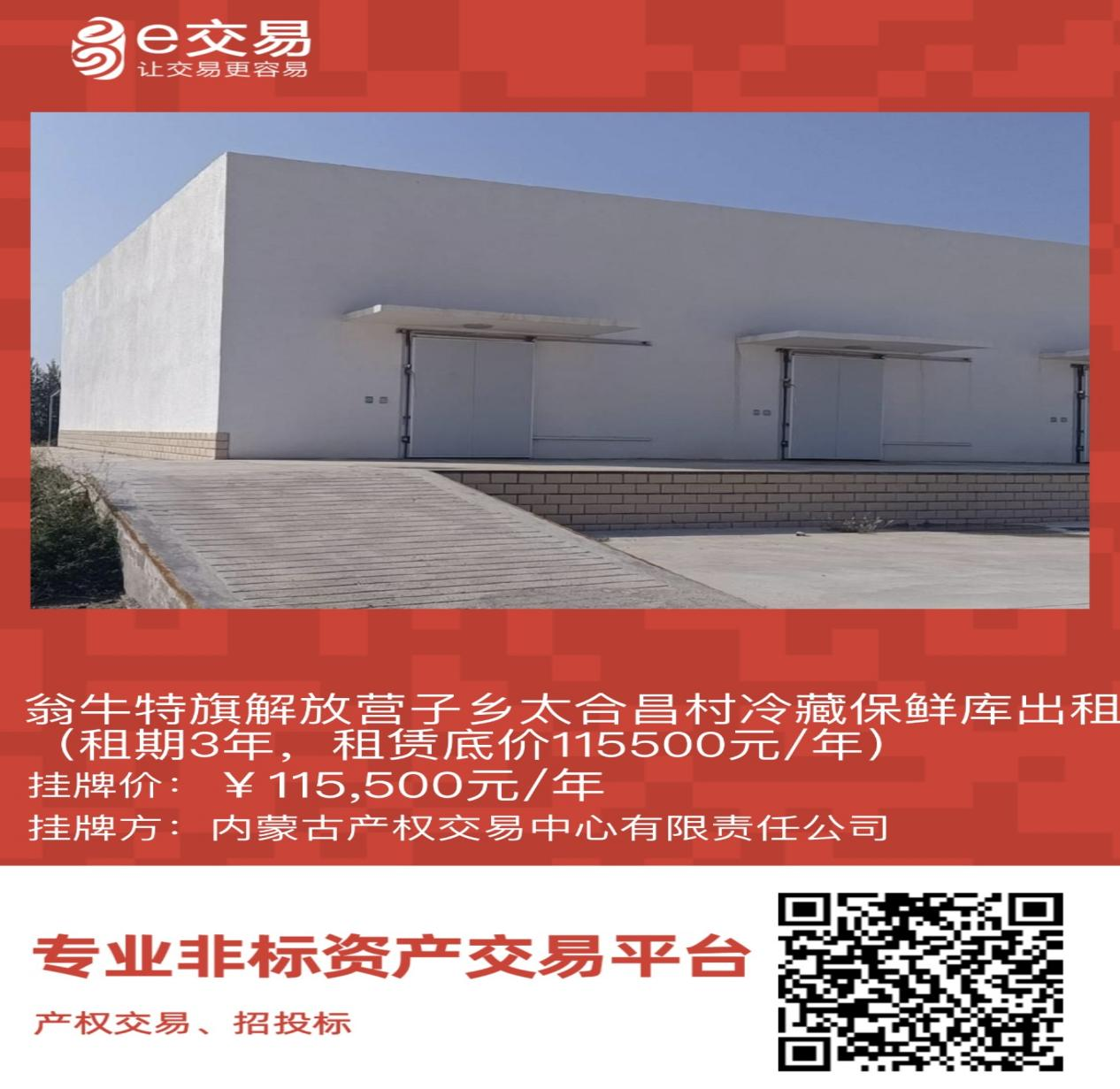 翁牛特旗解放營子鄉(xiāng)太合昌村冷藏保鮮庫出租(租期3年,租賃底價115500元/年)