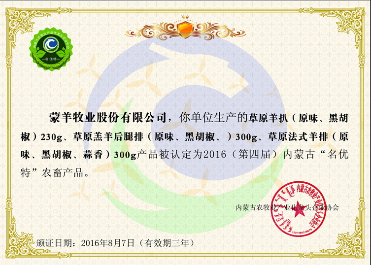 蒙羊牧業(yè)股份有限公司于2012年5月注冊成立,注冊資本3.1億元。成立至今,蒙羊牧業(yè)已布局完成了包含優(yōu)質(zhì)肉羊良種繁育、生態(tài)規(guī)?;N養(yǎng)殖、標(biāo)準(zhǔn)化生產(chǎn)深加工、全程冷鏈物流體系、全國終端渠道覆蓋在內(nèi)的綠色生態(tài)全產(chǎn)業(yè)鏈,并以規(guī)?;?biāo)準(zhǔn)化、產(chǎn)業(yè)化的發(fā)展模式以及全新互聯(lián)網(wǎng)思維的整合融入,一躍成為了農(nóng)業(yè)產(chǎn)業(yè)化國家重點(diǎn)龍頭企業(yè)、世界肉類組織成員、自治區(qū)扶貧龍頭開發(fā)企業(yè)、中國肉類協(xié)會常務(wù)理...