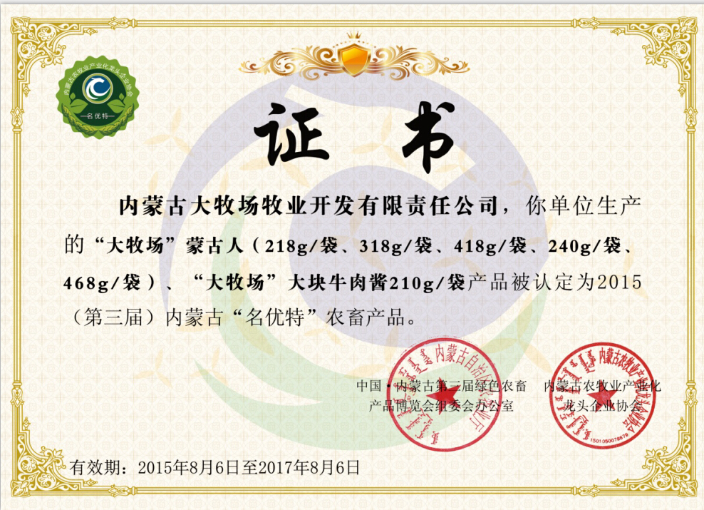 內(nèi)蒙古大牧場牧業(yè)集團(tuán),從2005年創(chuàng)業(yè)至今,始終致力于開發(fā)內(nèi)蒙古大草原優(yōu)質(zhì)的牛羊資源,堅(jiān)持打造基于食品安全管理閉環(huán)運(yùn)行的“全產(chǎn)業(yè)鏈 全程溯源”的牛羊肉產(chǎn)業(yè)鏈,目前已實(shí)現(xiàn)從牧場養(yǎng)殖、屠宰、精加工、連鎖專賣系統(tǒng)、電子商務(wù)拓展全覆蓋,集團(tuán)化、品牌化發(fā)展。     大牧場擁有...