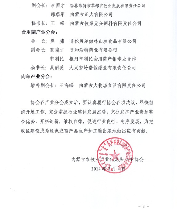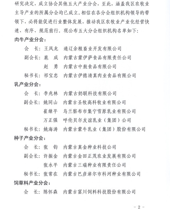 關于成立內蒙古農牧業(yè)產業(yè)化龍頭企業(yè)協(xié)會各大產業(yè)分會的通知