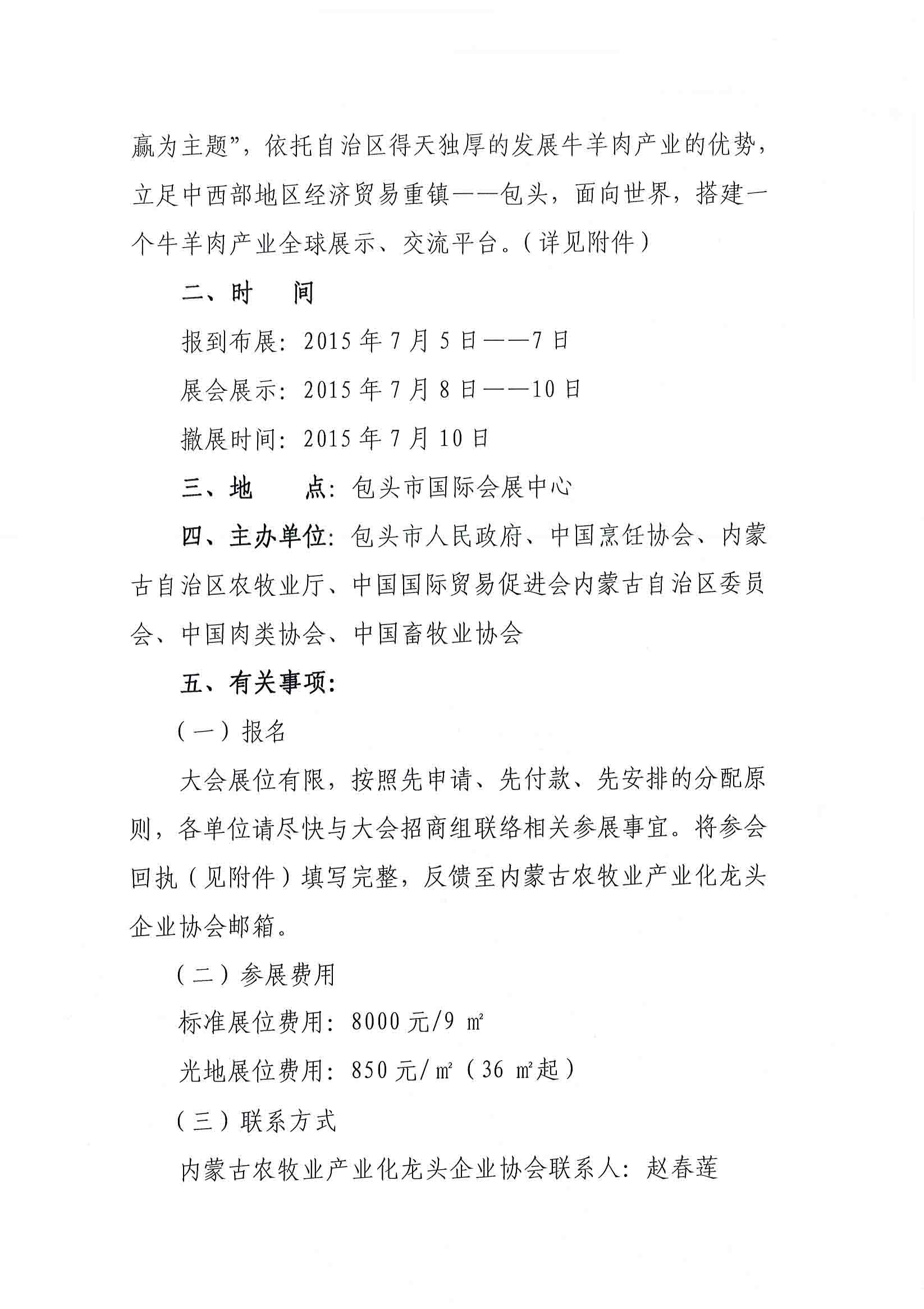 展會名稱: 2015第二屆中國(國際)牛羊肉產(chǎn)業(yè)大會暨包頭第一屆綠色農(nóng)畜產(chǎn)品博覽會