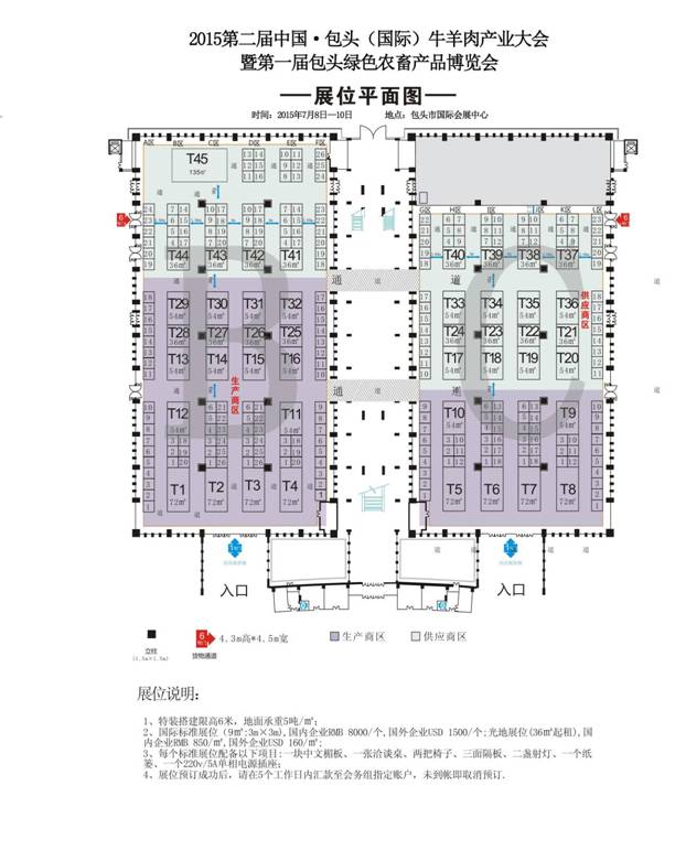 根據(jù)規(guī)劃,展館占地面積為10664平米。其中B館占地面積為5832平米可供搭建標準展位(3mX3m256個,主要以國內外牛羊肉生產(chǎn)加工企業(yè)、生產(chǎn)加工設備、包裝技術、冷鏈服務、各地區(qū)集體參展、獸醫(yī)獸藥、圈舍舍建設、飼草、金融服務機構、品牌營銷機構等企業(yè)為主導。C館占地面積4832平米,可供搭建標準展位(3mX3m229個,主要以包頭市轄內各農(nóng)牧業(yè)企業(yè)等參展單位為主。