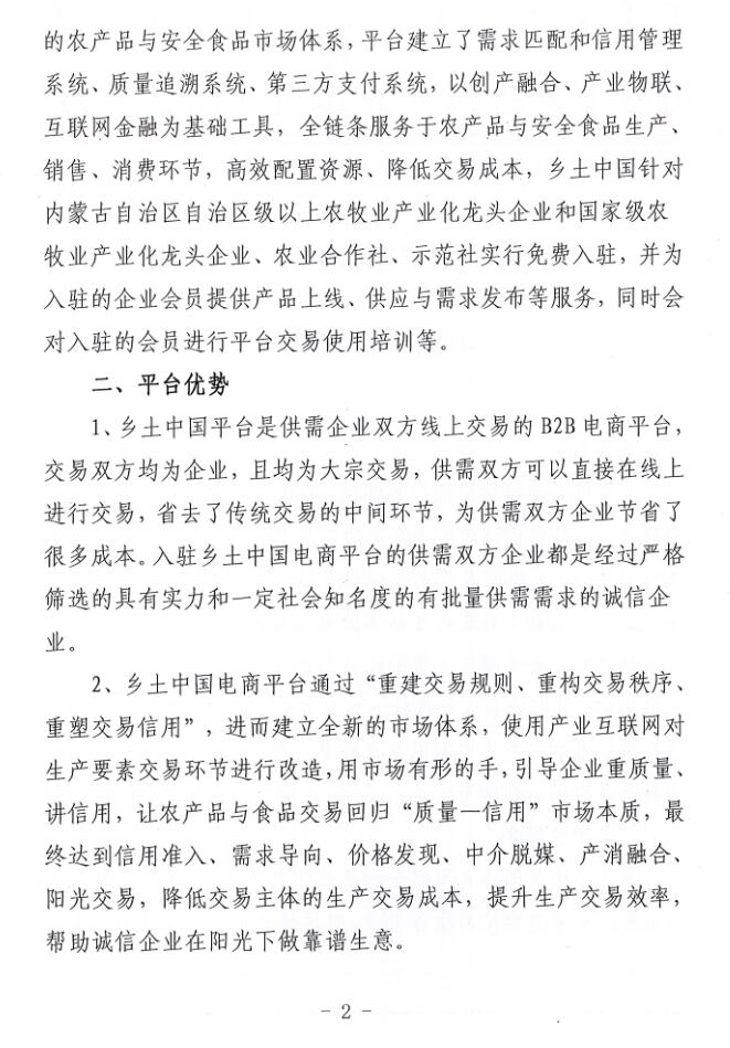 關(guān)于入駐鄉(xiāng)土中國首家安全食品產(chǎn)業(yè)電商平臺的通知