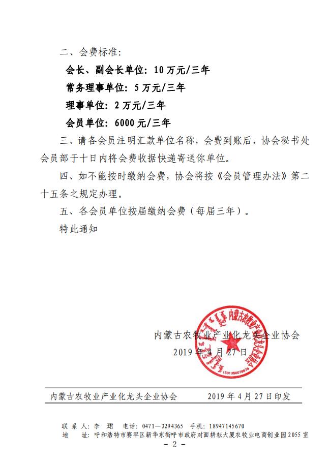 農(nóng)產(chǎn)協(xié)會字[2019]8號 關(guān)于收繳會費的通知