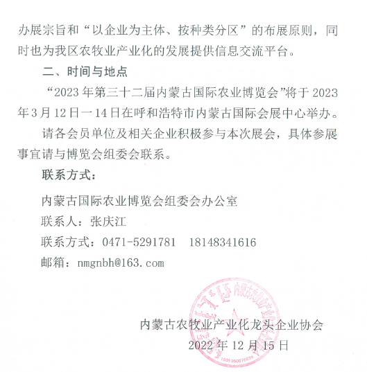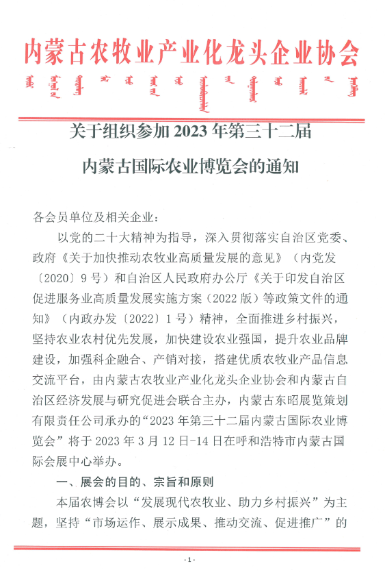 關于組織參加2023年第三十二屆內(nèi)蒙古國際農(nóng)業(yè)博覽會的通知