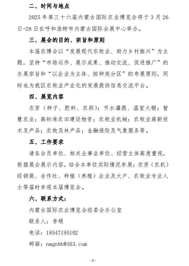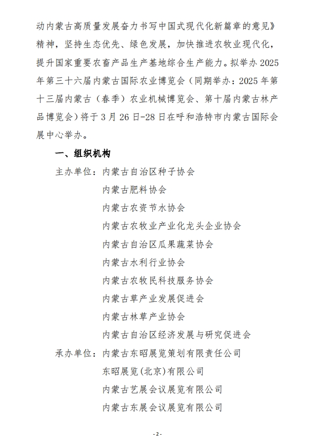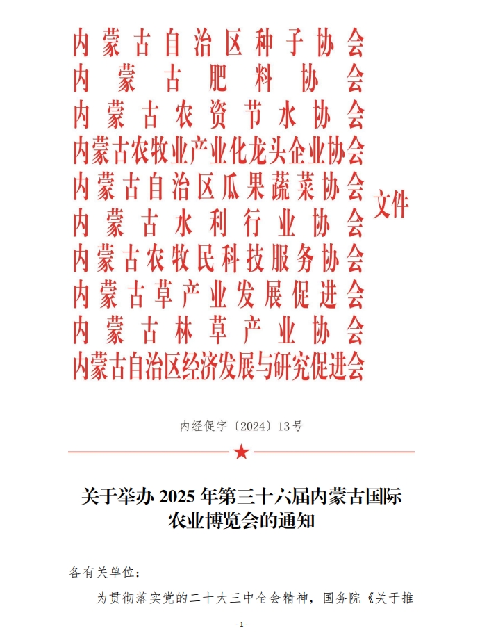 關(guān)于舉辦2025年第三十六屆內(nèi)蒙古國際農(nóng)業(yè)博覽會的通知