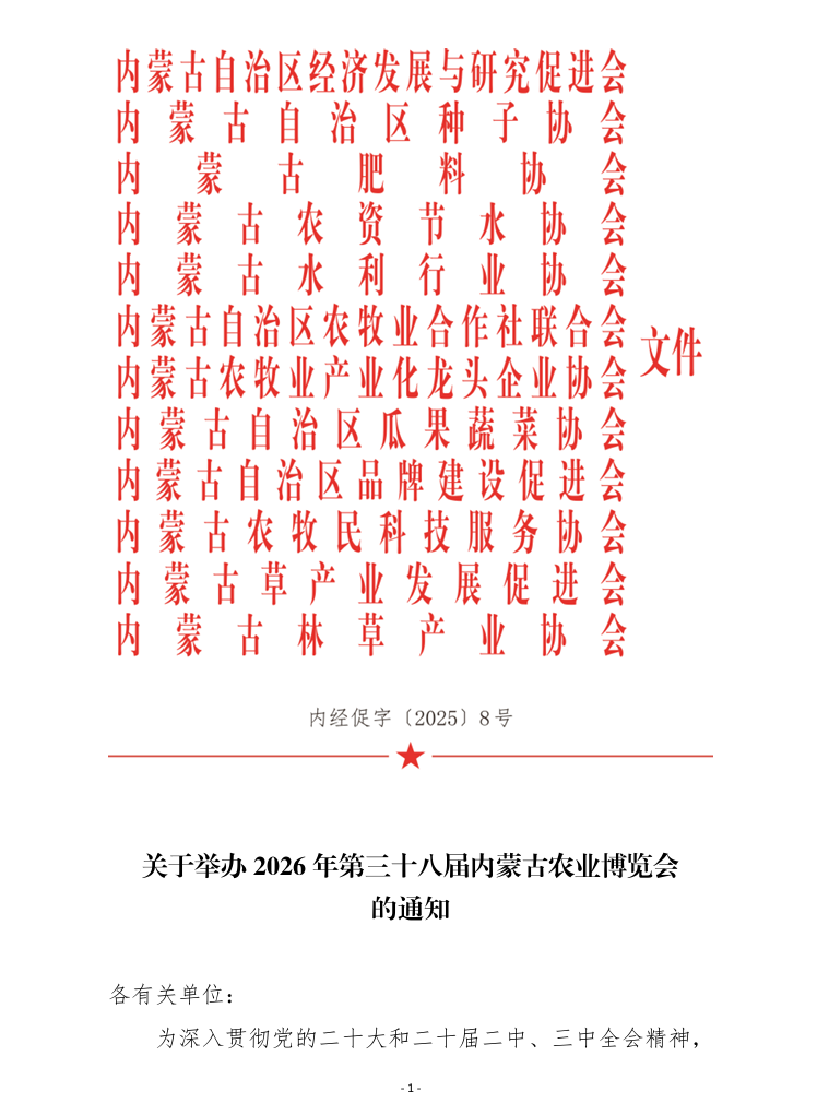 關于舉辦2026年第三十八屆內(nèi)蒙古農(nóng)業(yè)博覽會的通知